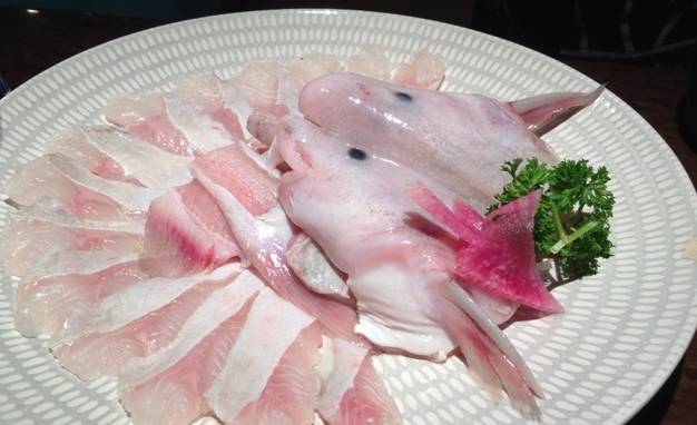 江团即长江鮰鱼,学名长吻鮠,此鱼在长江上中下游均有分布,春秋两季的桃花鮰和菊花鮰最当造。有黑白两种,前者是养于止水的,后者更上等。苏东坡形容江团的名句“粉红石首仍无骨,雪白河豚不药人”,要是换成黑漆漆的一团,就大煞风景了。