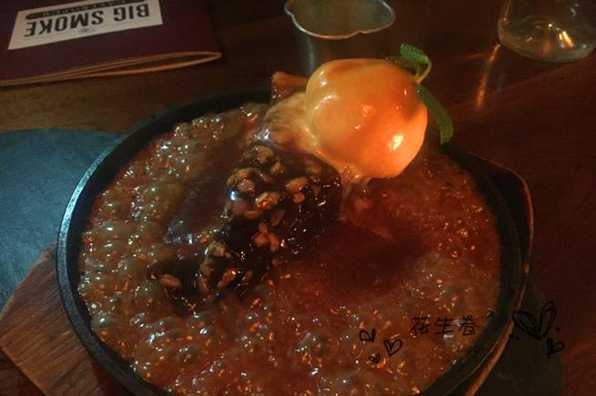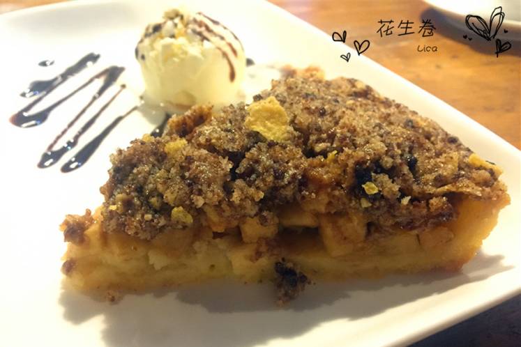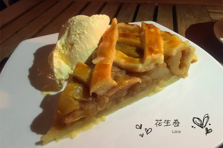 温度决定了派的口感。刚出炉的时候,馅的温度太高,会有点水水的。所以食用前最好稍微冷却。这家店在供应的同时将滚烫的红糖汁浇在了派上,并不是很好的处理方法。(这张照片这么丑是因为,这货真的化的太快了,急着拍了这张照片之后,上边的冰淇淋就已经基本消失了……)