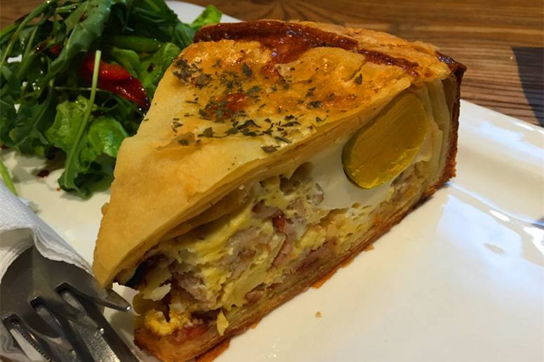 培根鸡蛋派不是地道的美式派也不是英式派,它风靡于澳大利亚和新西兰,一般作为早餐进行食用。