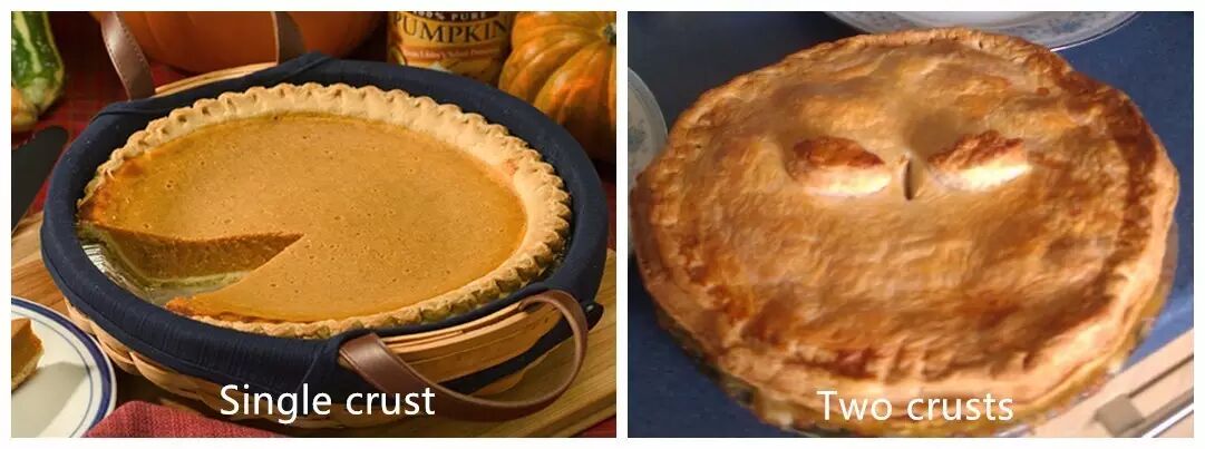 派有很多中分类方式:根据不同的外皮,又分成单层酥皮派(Single crust,非完全被酥皮包裹),和完整酥皮派(two crusts,酥皮完全包裹馅料);