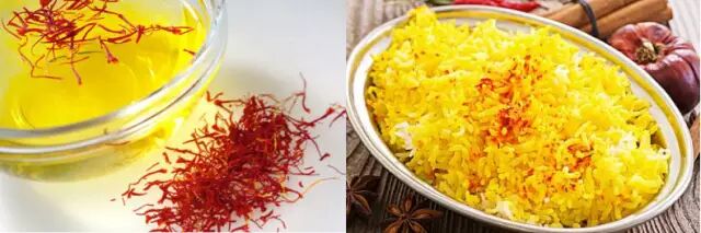 Saffron里含有150种以上的化合物,大多数都是类胡萝卜素。不过胡萝卜素可不是它鲜艳颜色的来源,它来自番红花素(α-crocin)。番红花在烹饪中,染色的功能多于味道的点缀:它没有什么明显的味道,其中的葡萄糖苷类物质Picrocrocin有种淡淡的苦味,不过这么贵的食材香料,每次一般只用一丢丢。把这么一丁点儿放进一大锅米饭里,什么味道也是很难尝出来的,主要的香味还是大米的米香。