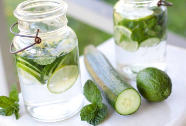 我们自己也可以做这种简单的“青草饮料”:将绿薄荷、黄瓜、柠檬泡水,味道就会很清爽!