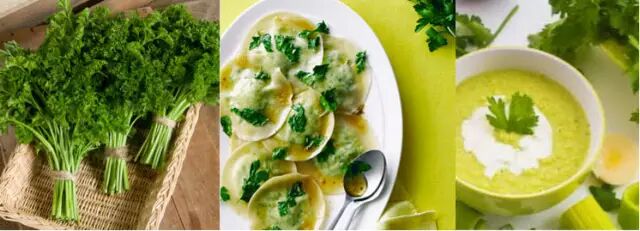 欧芹的用处在西方非常广泛,平时用时,切碎放进任何的炒菜、汤、烤肉里,既能作点缀又能作调味,都能让你的菜肴散发着淡淡的青草香,更小资更漂亮。