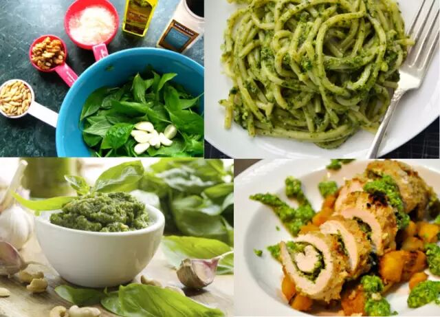 罗勒酱的制作非常简单,味道又好到爆。只需用大蒜、橄榄油、新鲜的罗勒的叶子和盐混合在一起,搅拌机打碎,吃的时候再加几颗松子就得到了颜色鲜艳、具有独特香味的Pesto。