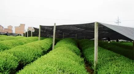 首先,“覆盖栽培”。在抹茶茶园,收获前大约1个月开始就需要搭建棚架,用遮光材料覆盖整片茶园,滤去90%的阳光。20天到1个月后,这些茶树新生的叶片中会生成更多的叶绿素,形态上也比普通茶叶更绿、更大、更薄、更嫩;同时叶片中以茶氨酸为主的氨基酸含量增加而导致甜味和鲜味的增加,儿茶素含量减少而导致苦涩味的降低,还有另一些对茶叶风味有影响的成分含量也会变得不同。这一特殊栽培方式赋予了原料鲜叶独特的翠绿色,还有那种不同于普通绿茶的天然甜味和海苔香。