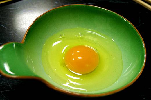 新鲜的生鸡蛋,卵白和卵黄坚挺立体且边界清晰 图sakuravillage.jp