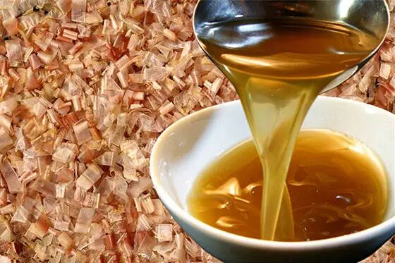 无论是关东派还是关西派,除了砂糖、味醂、酱油等调味料,最不可缺少的就是出汁(だし)----日本美食的味觉之源。很多店家会亲自熬煮出汁。出汁是由鲣鱼干(木鱼花)、昆布干、小鱼虾干一起长时间熬煮得到的一种的高汤,有着琥珀色光泽,口味清淡,既能提鲜又不至于喧宾夺主。当然,超市也能买到现成的。