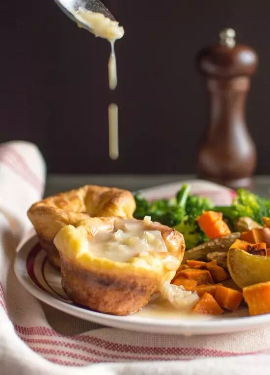 其实作为一个留学腐国爱好甜品的吃货来说,约克郡布丁在我最爱的起司蛋糕、红丝绒蛋糕、抹茶蛋糕等等面前,这个咸口的小家伙基本上算是小透明,更何况大多数时候,它只是被用来衬托主菜肉汁的香醇,但越是日常的东西,离开一年多之后反而越是想念,就像是在英国时候我很想念肉夹馍筋道的饼皮儿、煎饼果子嘎嘣蹦的薄脆一样,有些味道总是要漂洋过海才觉得格外香,距离一长,想念也越敏感。