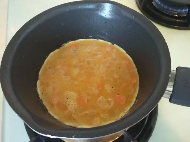 倒太多,可以先搅一搅,让蛋液可以更快熟