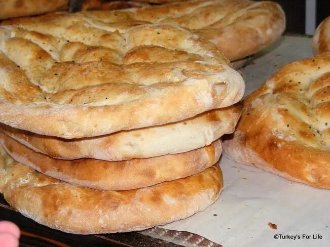 然后用一种类似馕的面包,切成小块,中间扯开。