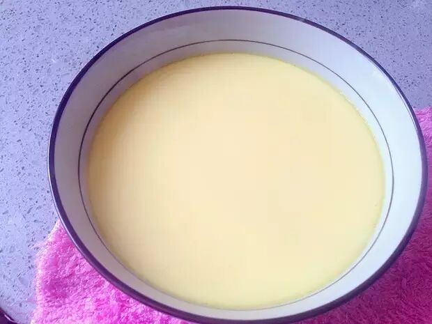 把凉白开换成牛奶,然后,加入糖,就变成了牛奶炖蛋;
