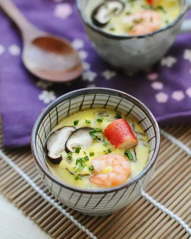 加入蟹柳、虾仁等就变成了日式炖蛋;