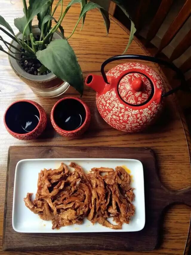 其中“烫干丝”是以酱汁起味、麻油提香、姜丝衬形、香菜托色。