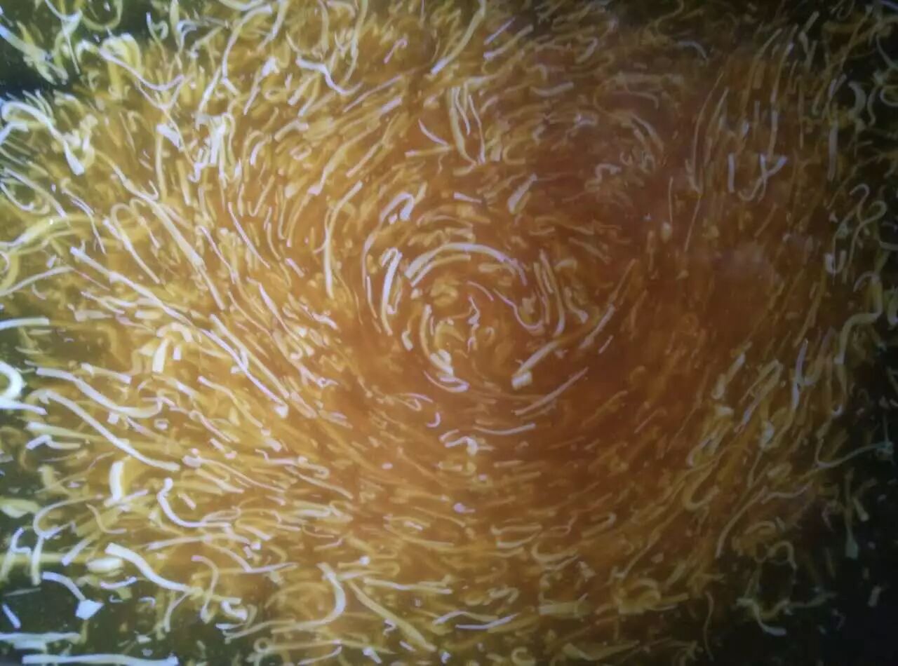 一种是内酯豆腐切细丝,所有食材勾芡后下入豆腐丝推均匀。