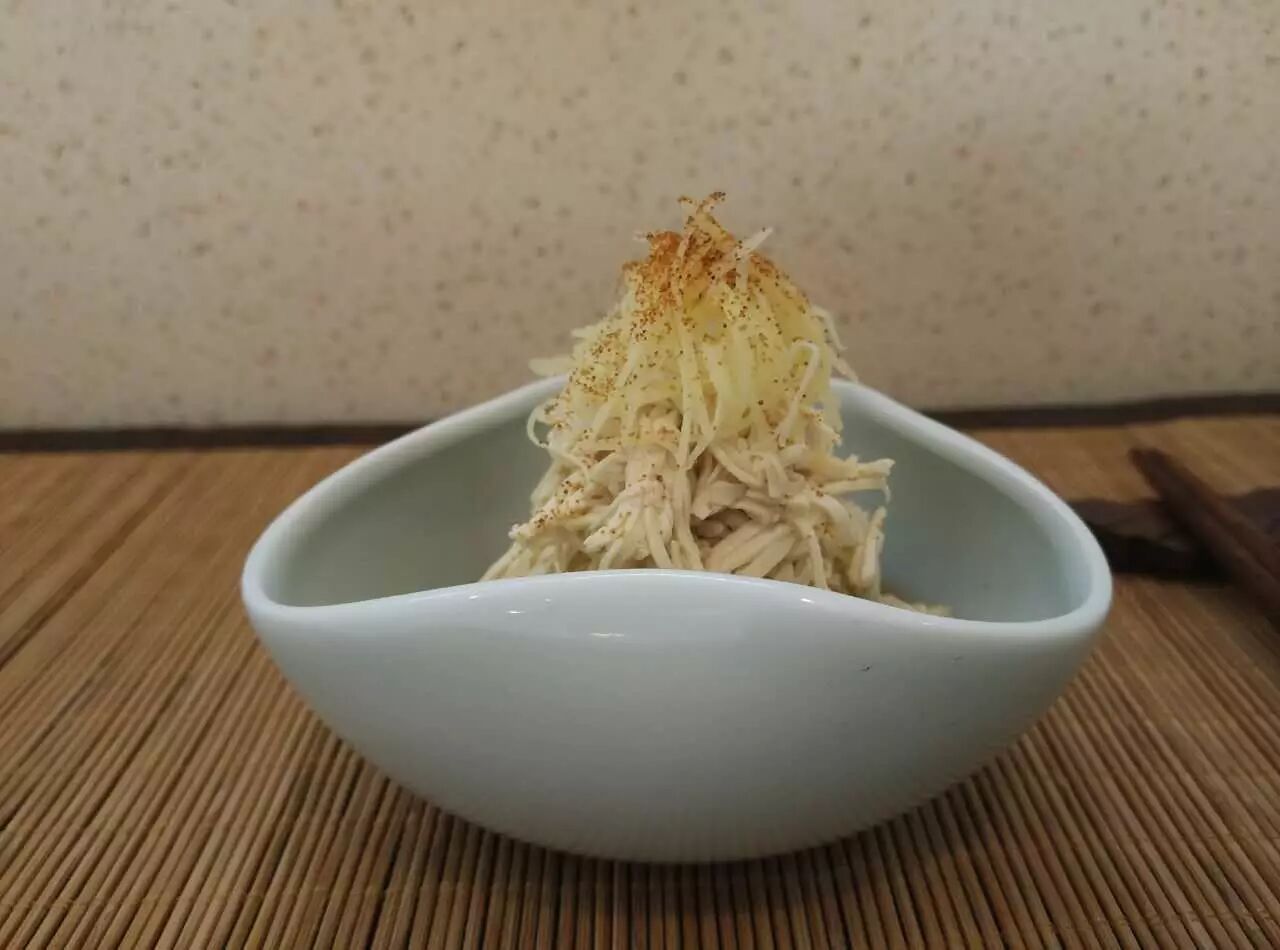 一种是用石膏豆腐,切细丝,配上五彩丝料,不勾芡。