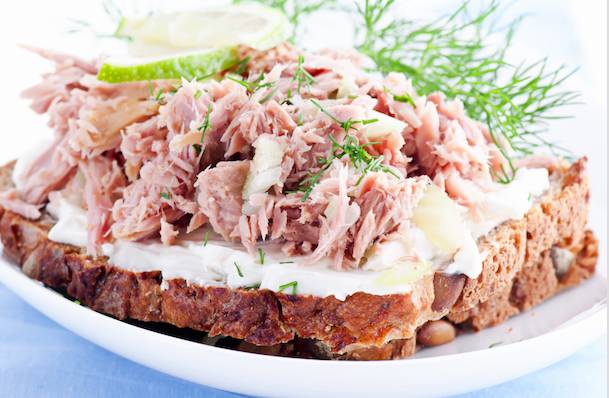 把油渍金枪鱼的油倒掉,鱼移入一个大碗中,加入蛋黄酱混匀。加在吐司中做成三明治或者加入喜欢的蔬菜做成沙拉都是极好的!