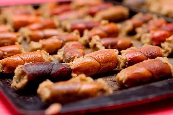 小龙虾煮熟后,很有仪式感的在长条桌上铺满报纸,把控干水的小龙虾们“Duang”的一下倾倒出来,顿时辛辣香气扑面而来。人们围坐在桌旁大快朵颐,吃小龙虾时还可以配上当地的玉米发糕。Cajunfood口味的小龙虾和我们熟悉的“麻小”有些许相似,辣味也十分劲爆
