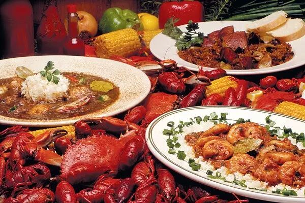 路易斯安娜有着众多的湖泊和沼泽,并且临近海湾,水产资源十分丰富。这些流淌着法兰西热爱美食的血液的阿卡迪亚流亡者们利用当地丰富的食材,以法餐为基础又和聚居在该地区的意大利人,西班牙人,墨西哥人,印第安人,非洲农奴的饮食文化相互融合,产生了无比美妙多元化的饮食文化。这就是著名的“Cajun food”。Cajunfood除了常见的海鲜、香肠肉丸、烤鸡烤兔以及各类米饭菜肴外,主打就是做法丰富的小龙虾菜。