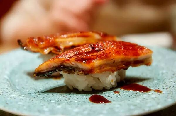 虽然在鳗鱼饭界星鳗的地位不高,但是在握寿司界可是大名鼎鼎,东京湾捕获的星鳗被称为“江户前穴子鱼”,也认为是星鳗里品质最好的。它是最难处理的寿司食材之一,但寿司职人们却对它情有独钟。金黄色的皮裹着纯白色的鱼肉,缠绕着米饭放入嘴里,在口中缓缓融化......融化。