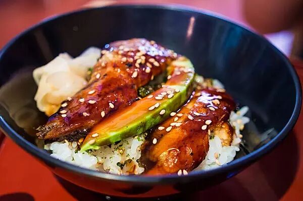 标准意义上的鳗鱼饭用到的是日本鳗(Anguilla japonica),日语叫做うなぎ(UNAGI),也就是俗称的白鳝、鳗鲡。它是洄游性鱼类,在深海中产卵,然后洄游到河流中生长发育,性成熟后便再次回到出生地繁殖,由于在淡水中生活时间较长,所以某种意义上它可以叫做“河鳗”。传统的鳗鱼饭必须用河鳗!而它野生种群数量急剧,养殖产量也不高且品质不如野生鳗鱼,所以价格相对昂贵。