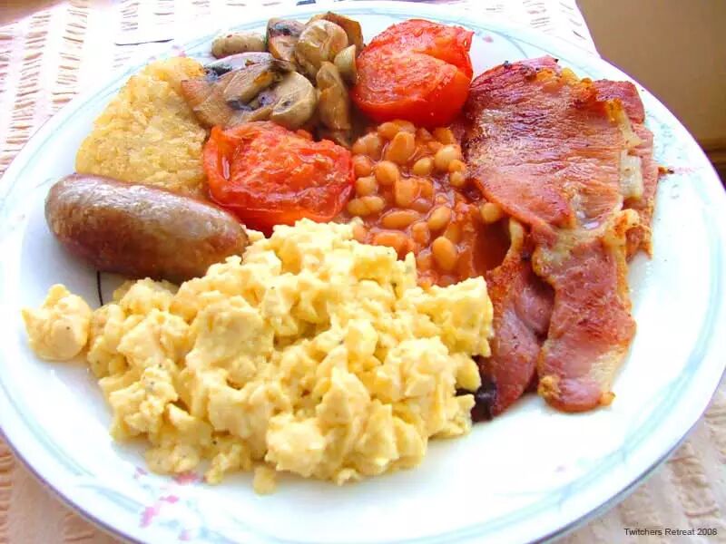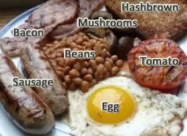 English breakfast,又叫full breakfast,其实摸着良心说,还算挺丰盛的。很多人甚至拿它当早午餐或者午晚餐,不能缺少的元素就是蛋和肉,当然还有标志性的罐头豆子_(:з」∠)_