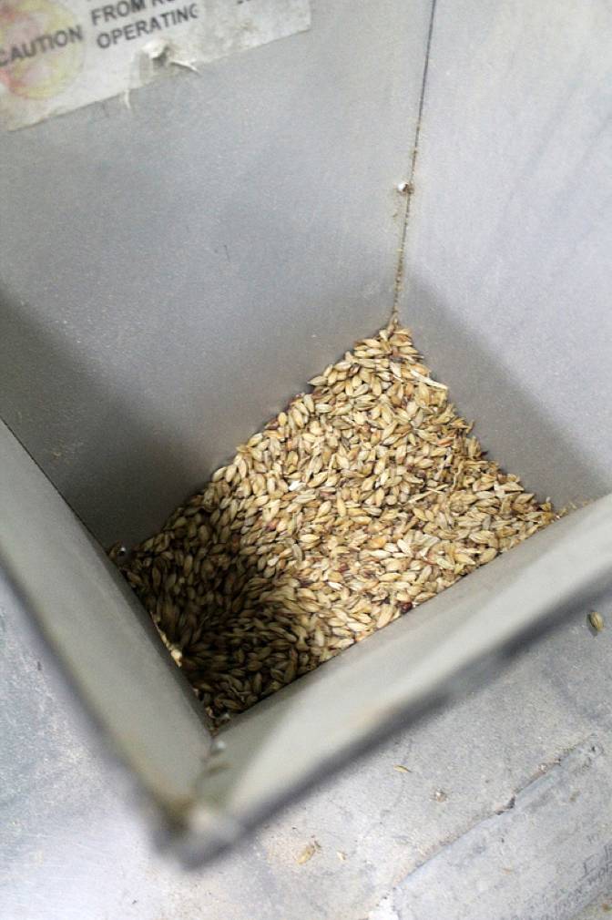 2. 将麦芽磨碎,加入温水开始糖化;