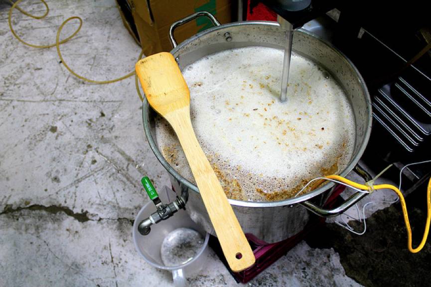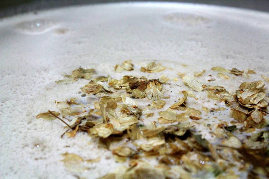 4. 在过滤掉麦壳后,开始煮沸麦汁,煮沸过程中加入啤酒花调味;