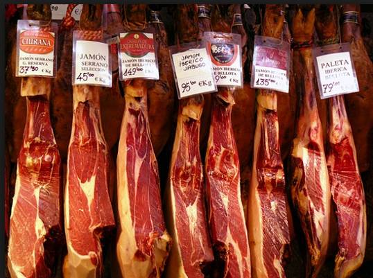 西班牙火腿分为两大类,ibérico和serrano。中文翻译叫伊比利亚火腿和塞拉诺火腿。