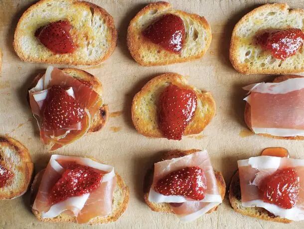 腌草莓和塞拉诺火腿配小面包 via seriouseats.com
