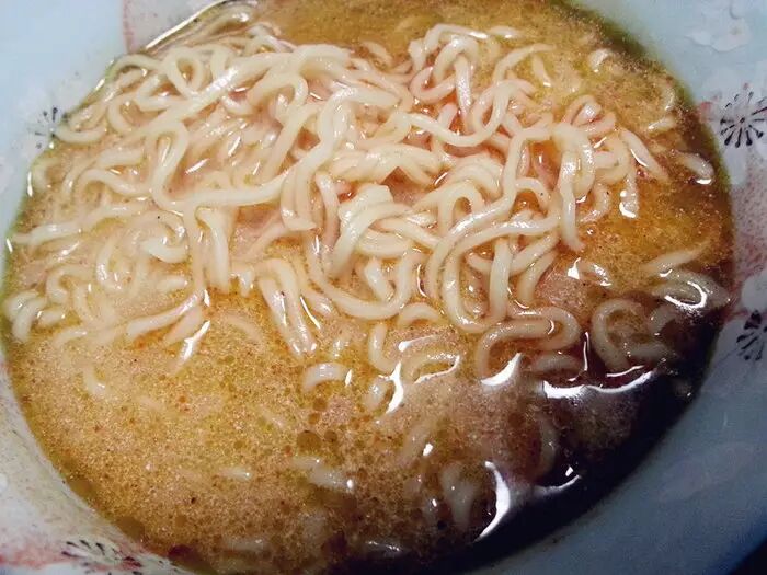 出前一丁是香港最常见的泡面之一,它的面真是我吃过的所有泡面里最得我心意的,首先面白,与韩国和国产方便面不同的白。面久煮不塌,吃在口中有弹性,根根分明。后来我研究了下同样是以Q弹著称的公仔面和新加坡面,出前一丁的面条是基本成椭圆状的,而新加坡面和公仔面有菱角,这可能就和受热有关了。我不是学这个的,有兴趣的可以研究下。