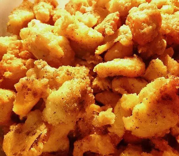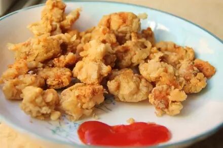 有面包糠的话可以腌好后裹上面包糠然后上锅炸。我家里没有面包糠,是裹上面粉炸的。