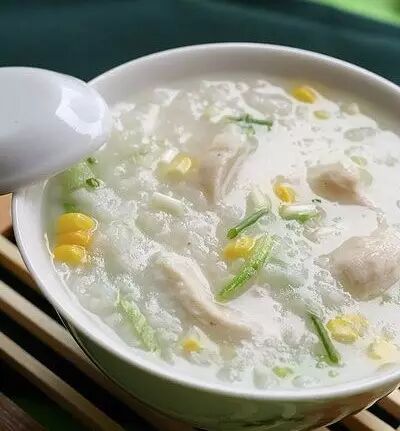 玉米鸡片粥,图片来自@爱心美食 的新浪博客