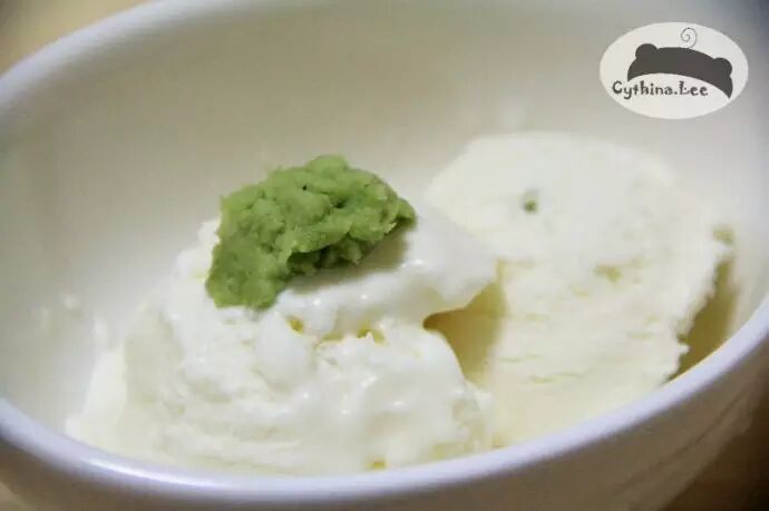 其实wasabi和芥末膏加的都不算少,不过依然是白色,要想到片子里冰淇淋的绿色,估计吃下去会死人的吧~