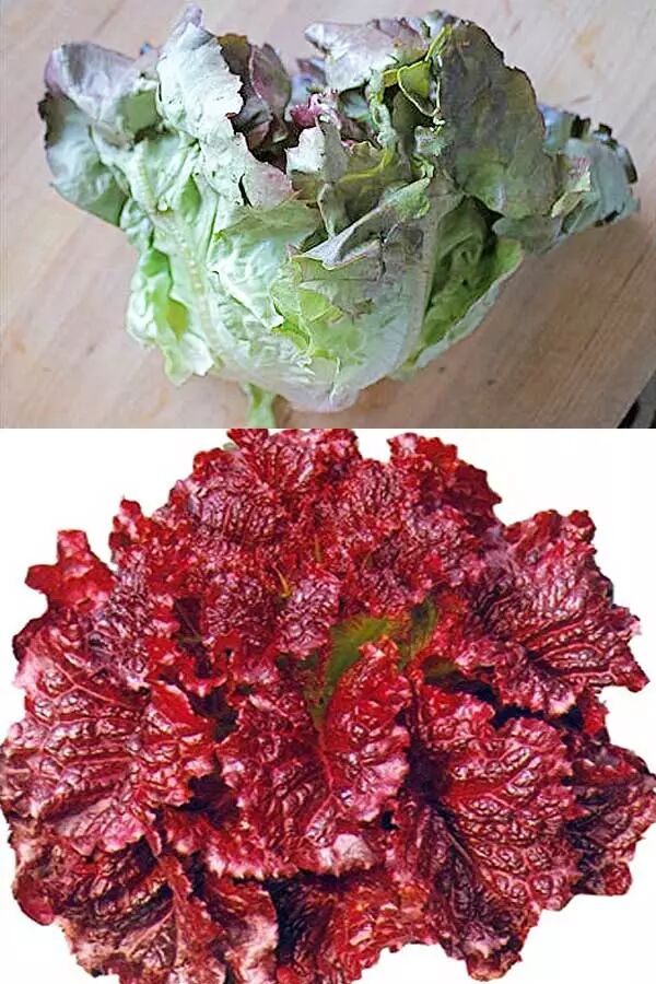 生菜的许多其它品种:像卷心菜的结球生菜(上)以及鲜艳的紫色生菜(下)。(图片来源: localfoods.about.com)