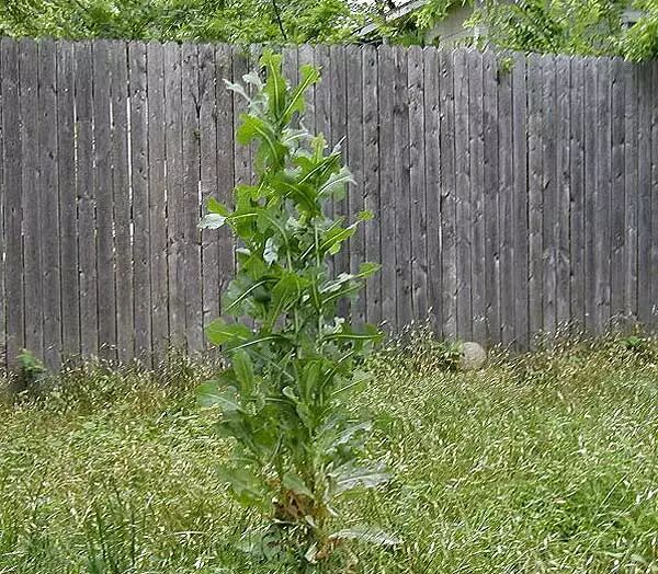 高大的刺莴苣,这个一点也不像餐桌上美味的“大毒草”,却是莴苣的最近的亲戚。它的祖上的某一支被栽培成了今天我们可以食用的莴苣。(图片来源:Wikimedia Commons)