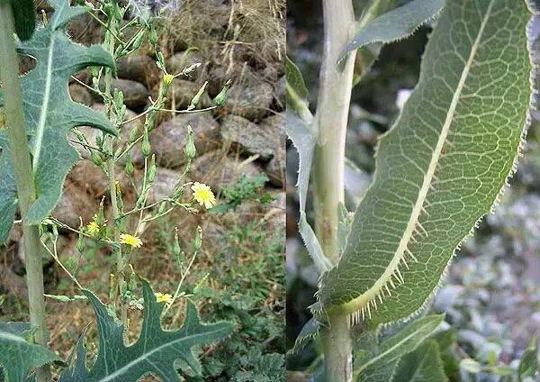 刺莴苣的花和叶子(图片来源:Wikimedia Commons)。