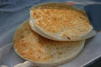 制作汽水粑粑的铁锅大概有一米半的直径。锅的正中有一个饭碟大的凹陷,四周是平的。等锅稍微烧热,就要往平板上加米浆。每两坨米浆要连在一起,这样才算是一个米粑粑。
