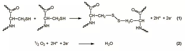 蛋白质中半胱氨酸残基的交联反应式,2个巯基被氧化成二硫键。