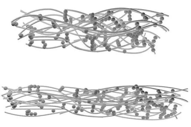 (b)是拉伸速度特别慢,这些分子被缓缓拉离本来的位置,却因为没有足够的力量,导致这些分子仍然蜷缩在一起,所以并不能拉得很远,面团表现出来的强度也不足