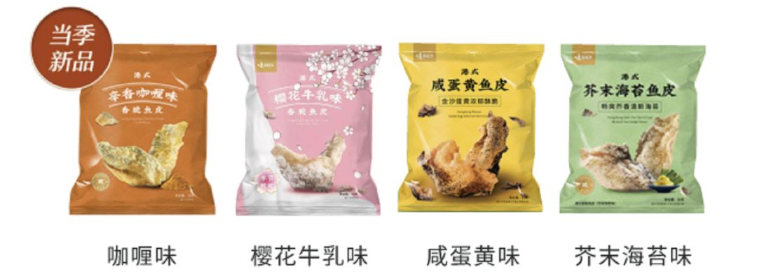 除了春日限定的樱花牛乳口味,还有其他口味可供选择:网红咸蛋黄鱼皮,浓烈的芥末海苔鱼皮,热情的咖喱鱼皮,一套混合装,满足你的好奇的味觉。所长偷偷告诉你,混合4袋装还更换算!