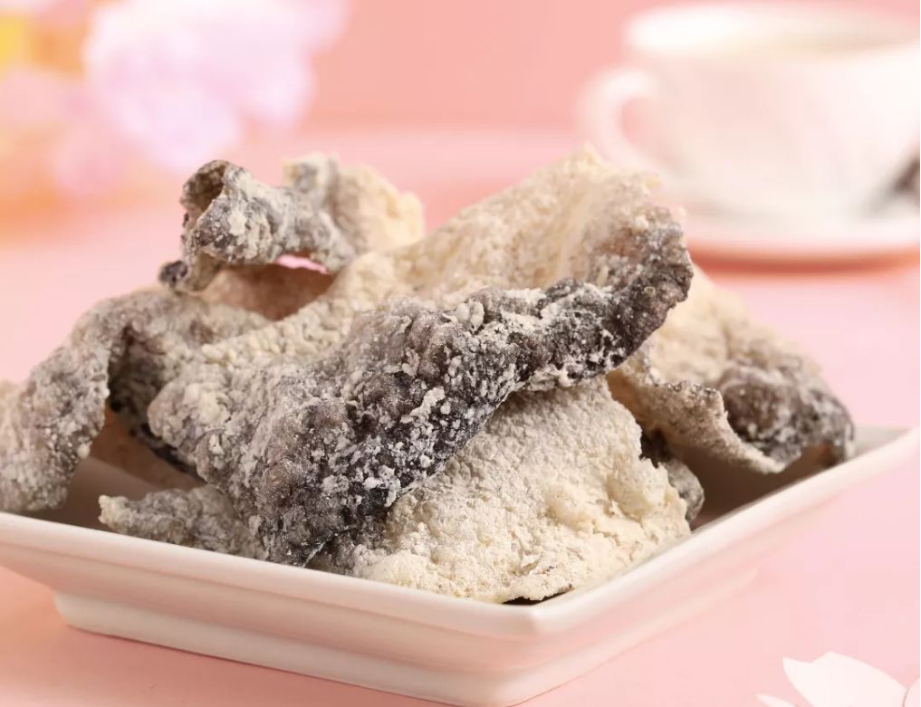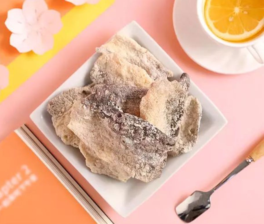 大片的鱼皮微微卷翘,送入口中沙沙作响,爽脆的鱼皮先从口感上占领口腔,接着混合着幽幽花香、清甜奶香的味道逐渐显现,清淡的微甜和鱼皮自带的鲜香互相中和产生了丰富的味觉体验。起初或许会对这种甜味稍有点不适应,可只要再多吃一块,就发现这种甜咸味会让你根本停不下来!