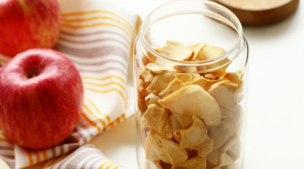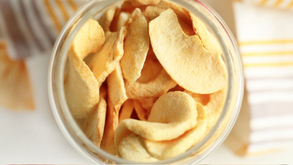 别小看苹果脆片的制作,它采用的不是普通的加工工艺,而是真空低温压差膨化技术,较大程度地保持了色、香、味不变,而带一定膨化度的脆片,口感多孔又爽脆,“嘎吱嘎吱”,听到脆片的声音就已经忍不住流口水了。