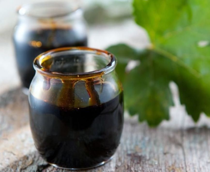现在,意大利还有一种名叫“vincotto”的糖浆,就是用鲜葡萄做的。具体的方法是,把未发酵的葡萄汁放在锅里熬煮,让它的体积浓缩到一开始的五分之一左右,就得到了棕红色的糖浆。这种糖浆可以当蜂蜜用,直接浇在甜点、奶酪、刨冰上吃,也可以当焦糖用,做蛋糕和布丁,还可以用来酿醋。