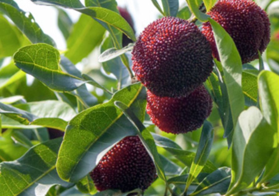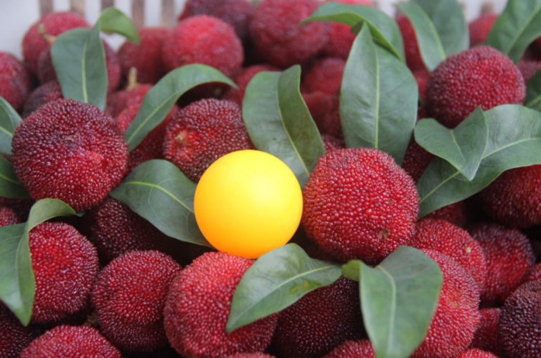 杨梅,因其形如水杨子而味似梅故名,也有朱红、白蒂梅等别称。不同于舶来的西瓜,杨梅是地道的中国水果,原产于我国东南部,杨梅的野生种生长史可追溯到7000年以前,人工栽培最迟从西汉开始,宋人尤爱吟诵杨梅。