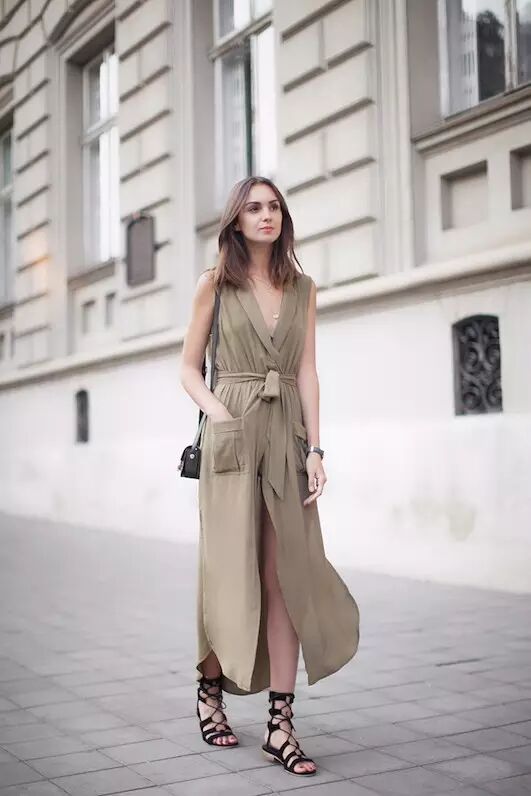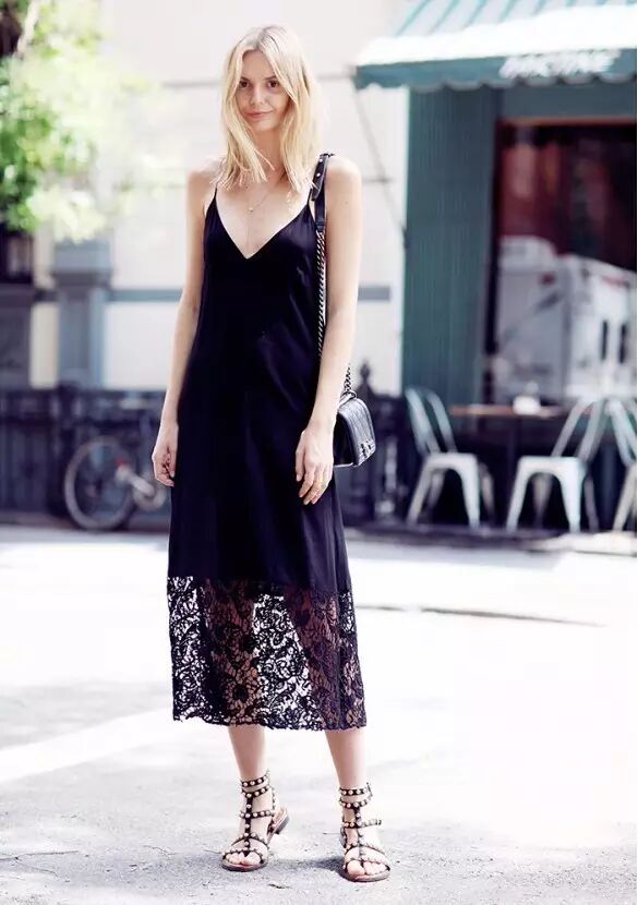 低跟罗马鞋,搭配清凉的吊带裙,大方随性又优雅。
