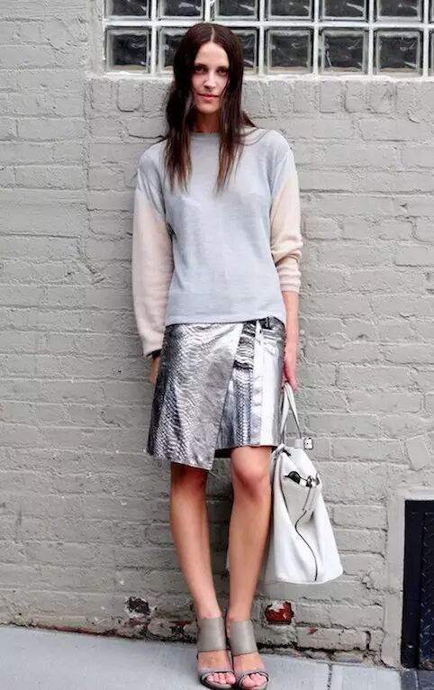 今年春夏金属银色也被频繁地运用在鞋履上,看着这样的单品我们不一定想穿,然而搭配得有范儿的话看起来还是蛮和谐的。