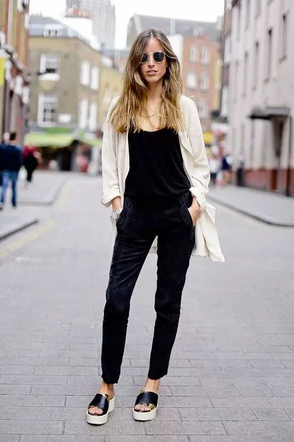 黑色的松糕凉鞋突出的是酷,白色的松糕凉鞋则是多一分少女味和萌感。白色的松糕鞋在去年也是红遍大江南北,不管是ASOS还是淘宝,都无法不见到它的身影。不少人都会将白色的松糕鞋与白色的衣着搭配,会比较干净清爽。