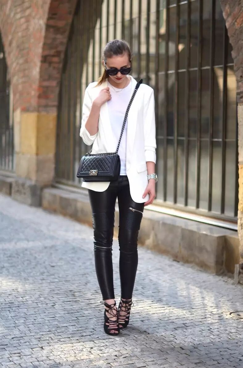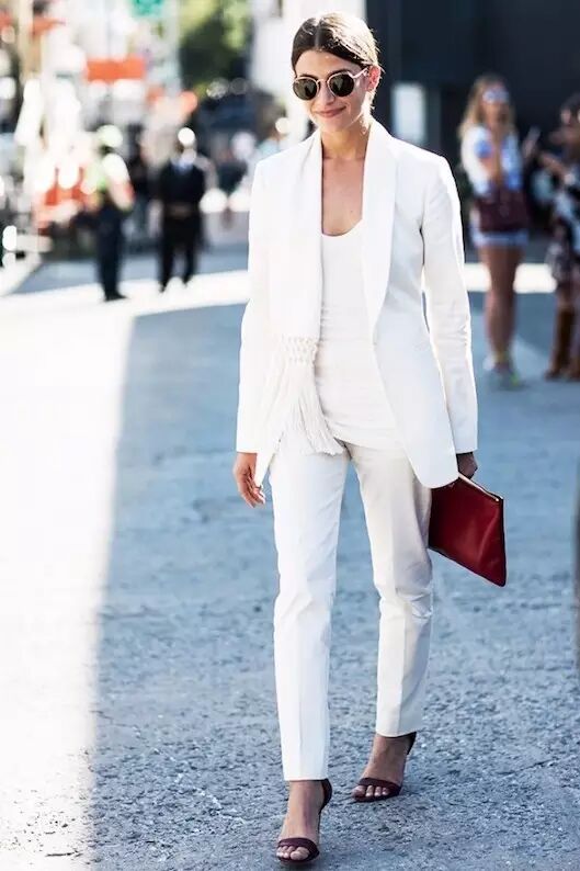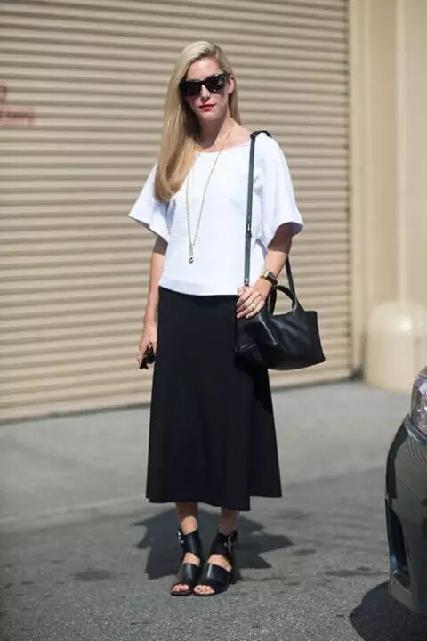 黑白双色的搭配比纯白的穿搭多了一分爽脆,比较monochrome chic。