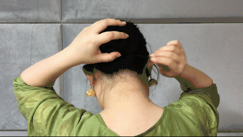 方法二:把头发绕在簪子上,再用皮筋固定