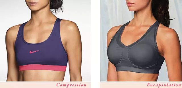 压缩式运动文胸(左)和罩杯式运动文胸(右)。图片来源:thebraguide.com